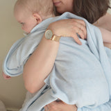 Si vous cherchez une couverture pour la naissance d'un petit garçon, pour faire du peau à peau, ou en couverture d'appoint qui s'emporte facilement, c’est celle qu’il vous faut, sinon allez jeter un oeil à nos autres couvertures.