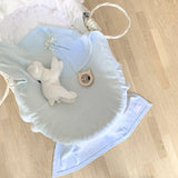 Ce bleu nuage choisi avec soin, et un bleu chiné très clair. Une couleur particulièrement douce et relaxante qui transportera bébé dans le doux monde des rêves. Un classique intemporel.